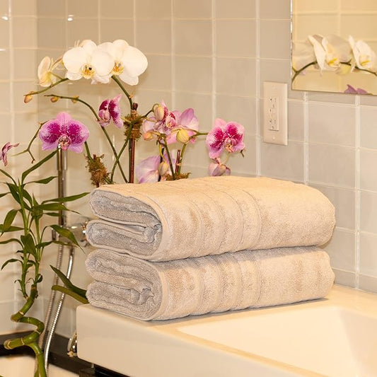 Mosobam Luxury Turkish Set of 2 Bath Towels 30X58 Light Taupe Oversize 700 GSM Bamboo Viscose & Aegean Turkish Combed Cotton