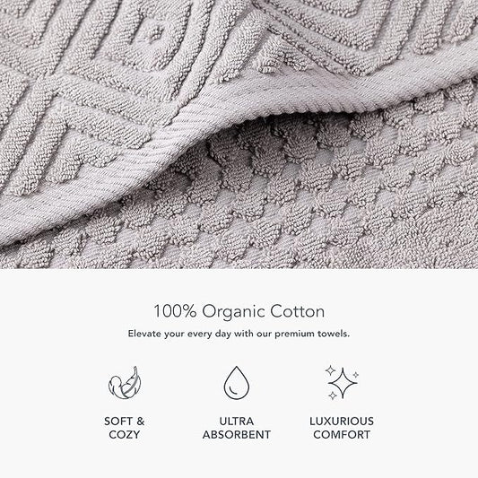 Texere 100% Organic Cotton Diamond Jacquard 700 GSM Luxury Bath Towel Sets - Ultra Soft and Absorbent Hotel and Spa Quality (Diamond, Cathedral Gray, 4 Bath Towels)