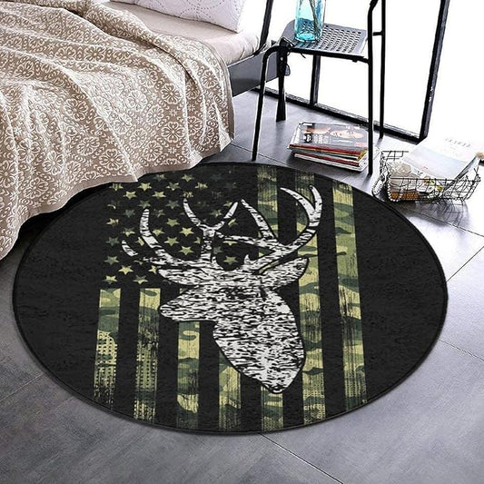 Large Home Decor Mat, Soft Round Yoga Carpet, Non-Slip Machine Washable Kitchen Office Circle Rug Compatible with Deer Camo Camouflage American Flag Hunting Black