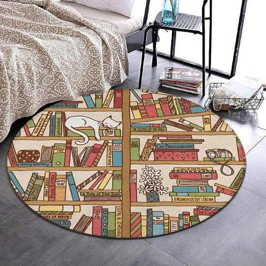 Large Home Decor Mat, Soft Round Yoga Carpet, Non-Slip Machine Washable Home Office Circle Rug Compatible with Sleeping Cat Library Bookshelf
