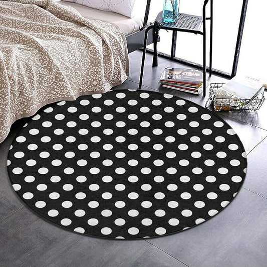 Large Home Decor Mat, Soft Round Yoga Carpet, Non-Slip Machine Washable Home Office Circle Rug Compatible with White Black Polka Dots