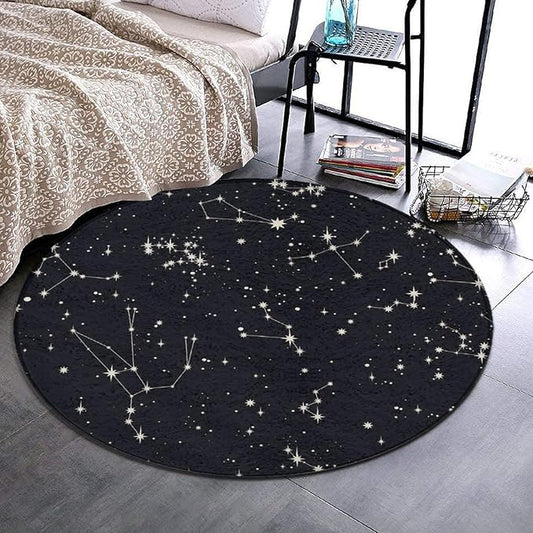 Large Home Decor Mat, Soft Round Yoga Carpet, Non-Slip Machine Washable Kitchen Office Circle Rug Compatible with Zodiac Constellation Galaxy Black Starry Night Stars Glow Dark Midnight