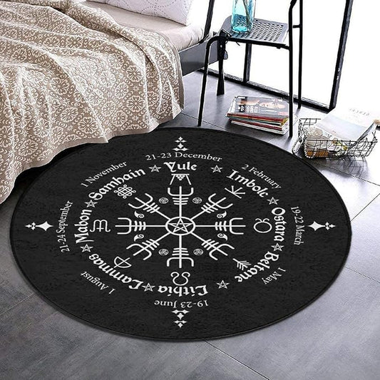 Large Home Decor Mat, Soft Round Yoga Carpet, Non-Slip Machine Washable Home Office Circle Rug Compatible with Norse Viking Vegvisir Compass Goth Pentagram