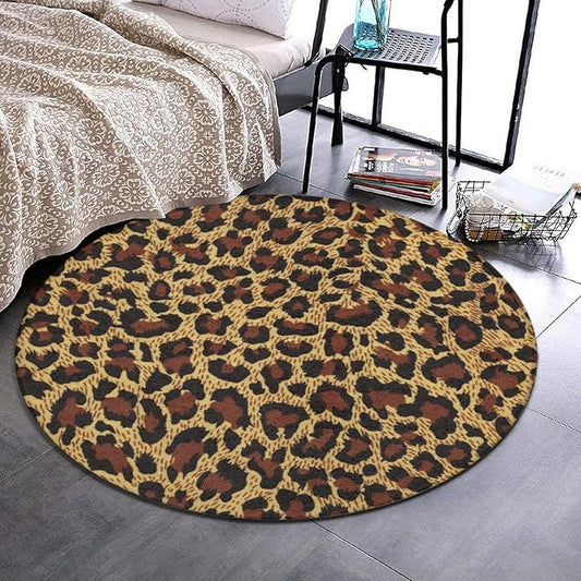 Large Home Decor Mat, Soft Round Yoga Carpet, Non-Slip Machine Washable Kitchen Office Circle Rug Compatible with Leopard Cheetah Print