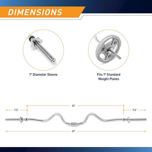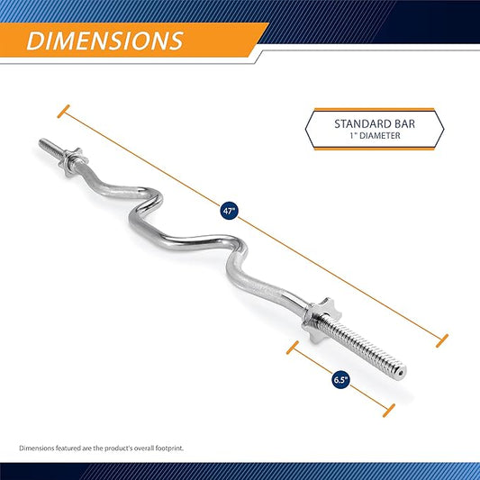 Marcy 1 inch Standard Curl Bar with Spin-Lock Collars Weightlifting Strength Training Home Gym Accessory for Triceps and Biceps