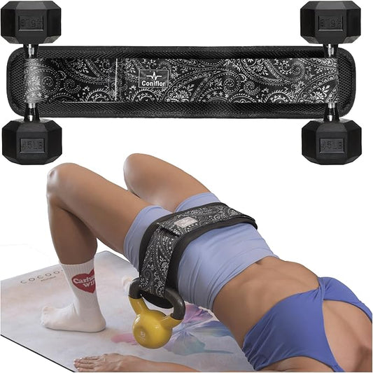 Hip Thrust Belt - Adjustable Fitness Belt for Dumbbells, Kettlebells, Weight Plates - Support Up to 100 lbs - Upgrade Slip-Resistant Pad for Safe and Comfortable Glute Workouts at Home or Gym