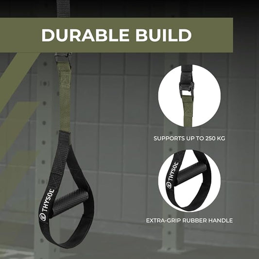 THYSOL® Resistance Trainer Pro Xtreme Straps Army | Sling Trainer Set with Adjustable Door Anchor | Fitness Home Workouts - Suitable for Travelling & for Training Indoor & Outdoor