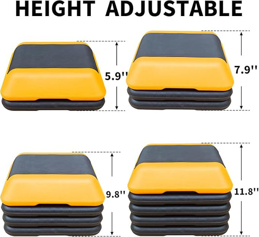 Aerobic Step Platform 30" × 14" Height Adjustable Workout Step for Fitness Strength Training with Risers Exercise Platform for Home Gym