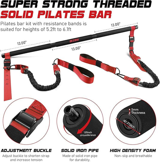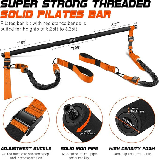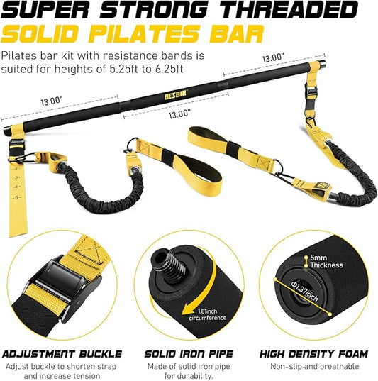 Pilates Bar Kit with Resistance Bands for Working Out, 210lbs Heavy Resistance Bands with Handles, Pilates Equipment with Resistance Band Bar for Men Women, at Home Gym Full Body Workout Equipment