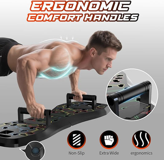 LALAHIGH Push Up Board,36 in 1 Home Gym Equipment with Ab Roller Wheel & Resistance Bands, Portable Foldable Workout Board for Full Body Strength Training Men Women