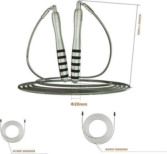 Speed Jump Rope with Weights - Interchangeable 2mm & 5mm Dual Cables Fast-Clip System for CrossFit, Double Unders, HIIT - Adjustable 9.8-10ft Speed Rope for Men/Women/Kids Home Gym