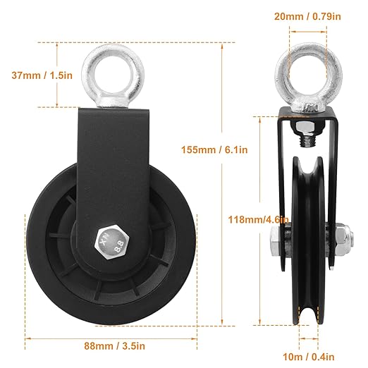 BESTEEL 4 Pack Silent Nylon Gym Cable Pulley Wheel 3.54 in/90 mm Rotation 360 Degree Traction Wheel Detachable Smooth Attachment for LAT Pulley System DIY Gym Pulley System Equipment Replacement Hoist