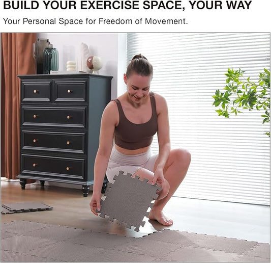 AIRHOP 18 Tiles Gym Floor Mat, EVA Foam Puzzle Gym Mat, High-Density Interlocking Foam Floor Tiles for Home Gym, Play Workout Garage Kitchen Flooring