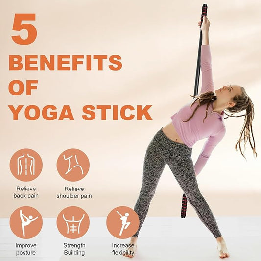 Yoga Stick Sturdy Steel, 5 Ft Adjustable Stretching Stick for Mobility, Flexibility and Balance, Versatile Exercise Stick with Non-Slip Ends and Foam Handles for Fitness, and Posture