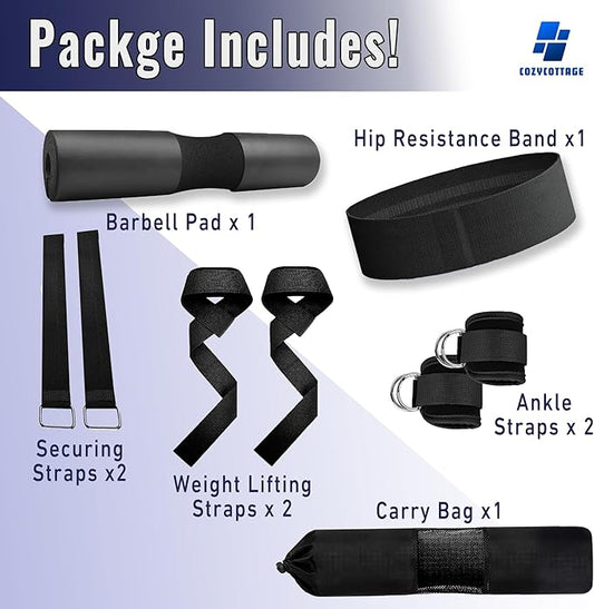 Barbell Pad Set for Hip Thrust & Squats – 9-Piece Workout Kit for Women | Includes 2 Bar Pads, 2 Ankle Straps, 2 Resistance Bands & Gym Accessories – No Pain Hip Thrusts – Glute, Leg & Booty Training