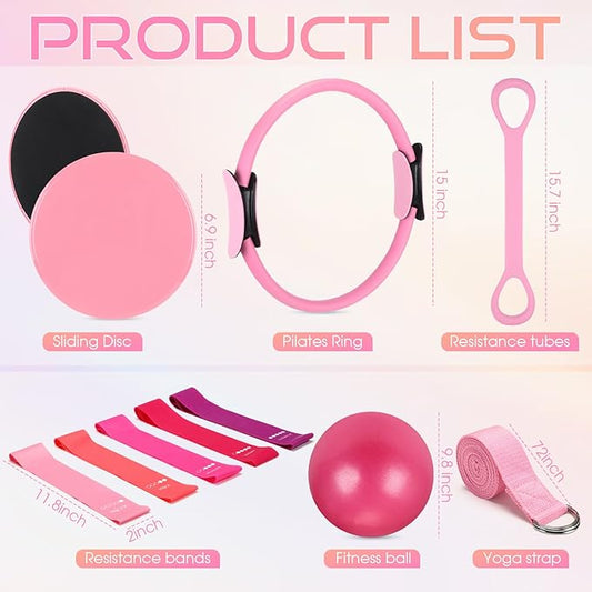 Set of 6 Style Pilates Home Equipment Set Pilates Essential Kit Workout Accessories 14 Magic Circle Mini Exercise Ball Yoga Strap Silicone Tension Strip Tension Band Sliding Plate