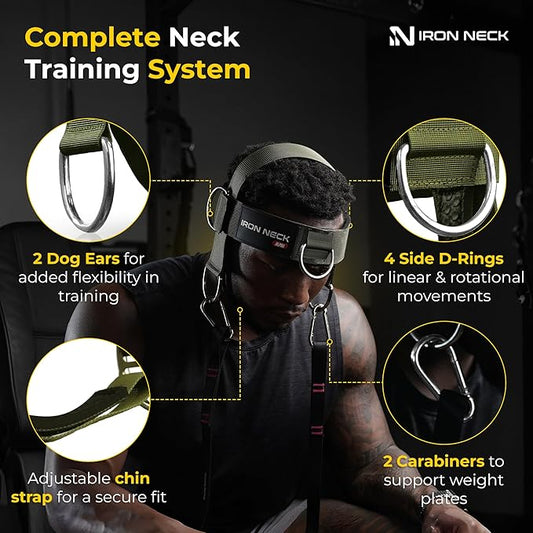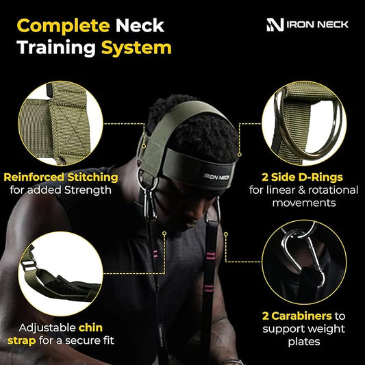 Iron Neck, Versatile Neck Exerciser, Strengthener and Trainer with Adjustable Head and Chin Strap, Portable Head Harness for Weight Lifting, Home and Gym Use