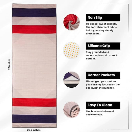Yoga Drip Yoga Towel - Non Slip Hot Yoga Mat Towel With Corner Pockets, No-Skid Grip, and Built-in Alignment Lines | Soft, Moisture Wicking, and Sweat Absorbent | No Bunching, Stays in Place 72" x 25"