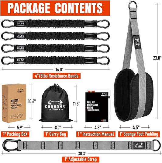 Pull Up Assistance Bands, 300lbs Heavy Duty Resistance Bands for Pull Ups with Adjustable Height, Fabric Feet Rest & Knee Support, Strength Training Pull Up Bar Assist Bands for Home Gym Workouts