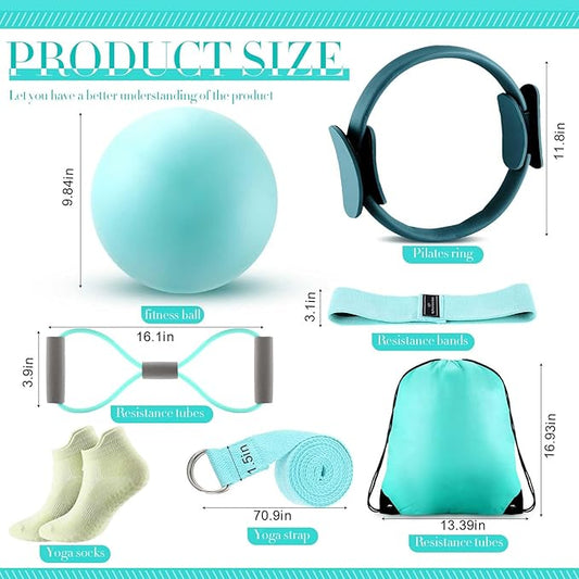 Poen Home Pilates Kit for Women Pilates Equipment Ring and Ball Set with Stretching Strap 8 Resistance Bands Non Slip Socks Gym Back Bags Exercise Equipment for Workout