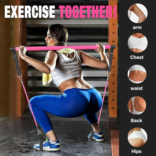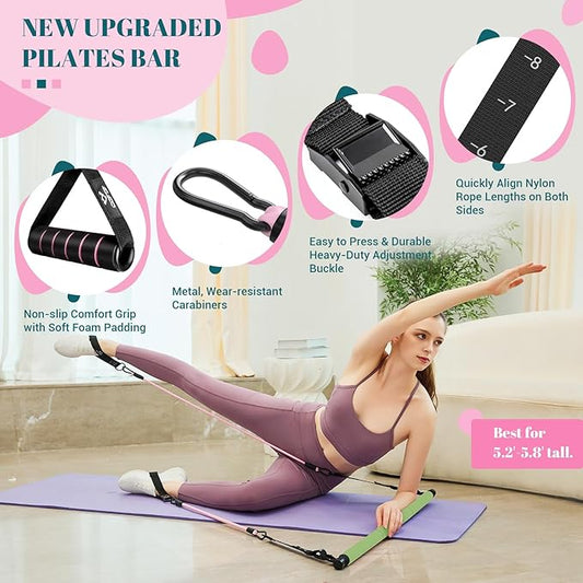 Pilates Bar Kit with Resistance Bands, Multifunctional Yoga Pilates Bar with Heavy-Duty Metal Adjustment Buckle, Portable Home Gym Pilates Resistance Bar Kit for Women Full Body Workouts