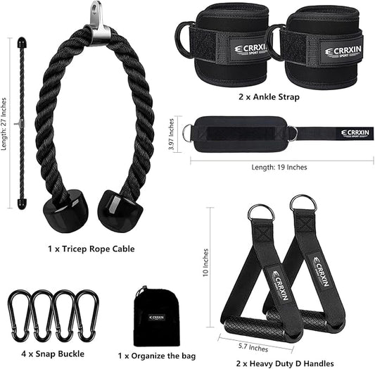 Tricep Rope Cable Machine Attachment, LAT Pulldown Attachment Tricep Pull Down Rope for Cable Machines Exercise Handles & Ankle Strap Home Gym Accessories