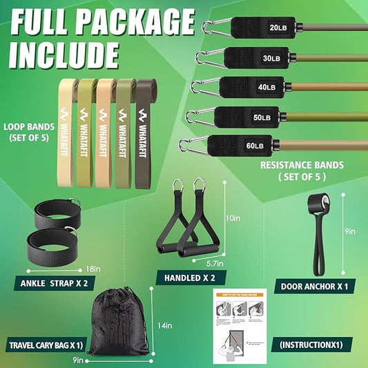 WHATAFIT Resistance Bands, Exercise Bands,Resistance Bands for Working Out, Work Out Bands with Handles for Men and Women Fitness, Strength Training Home Gym Equipment