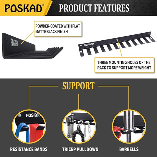 Poskad Multi-Purpose Gym Storage Rack,8 OR 12 Hook Heavy-Duty Steel Gym Organizer Wall Mount Hanger for Home and Pro, Gym Accessory Storage Resistance Bands,Jump Ropes,Lifting Belt,Barbells.