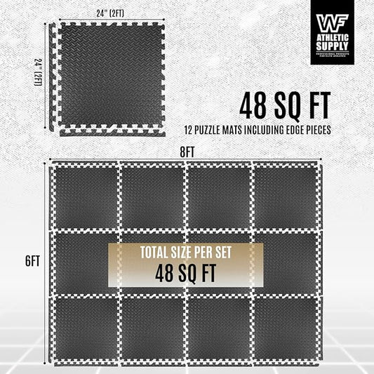 WF Athletic Supply Puzzle Exercise Mat, EVA Foam Interlocking Tiles with Border, 1/2" Thickness Interlocking Soft Foam Puzzle Play Mats for Home Gym, Garage & Kids’ Playroom