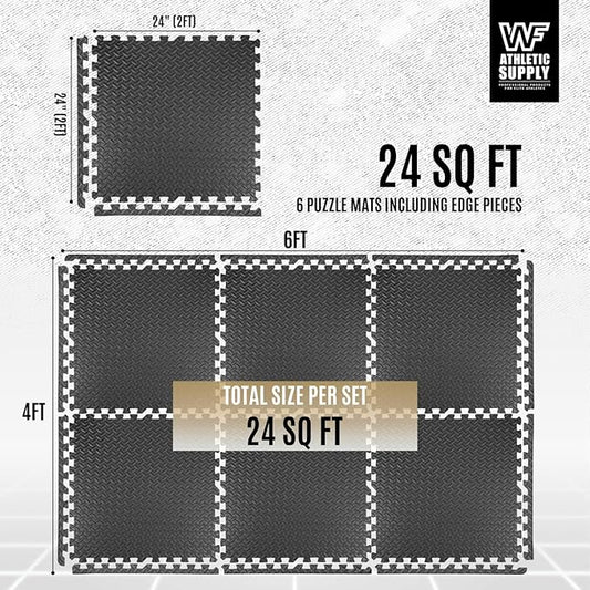 WF Athletic Supply Puzzle Exercise Mat, EVA Foam Interlocking Tiles with Border, 1/2" Thickness Interlocking Soft Foam Puzzle Play Mats for Home Gym, Garage & Kids’ Playroom
