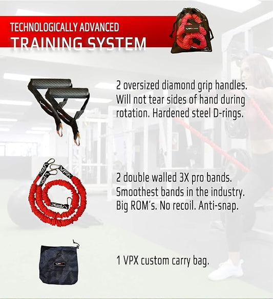 VPX Power Resistance Training System 3.0 | Total 3-Way Stacking Home, Gym, Sport Fitness | Men & Women | 220 LBs Adjustable Suspension Resistant Strength | Leg, Squat, Press, Push, Glute, Arm, LAT
