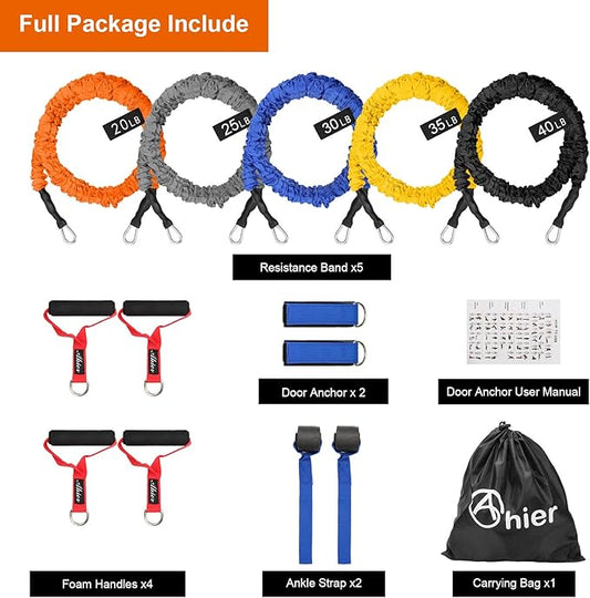 AHIER 14PCS Resistance Bands Set, Exercise Bands for Men & Women, 20lbs to 40lbs Workout Bands, Elastic Resistance Bands with Door Anchor, and Ankle Straps for Training, Yoga
