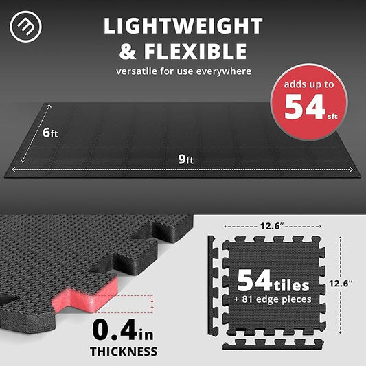 bemaxx Gym Mats Set - 54 pcs EVA Interlocking Foam Floor Tiles (12.6"x12.6"x0.4") 54sqft Protective Gym Flooring Sports Home Workout Exercise Mats Puzzle Garage Fitness Play-Room Garage Pool Treadmill