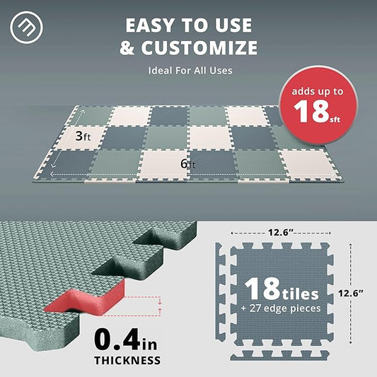 bemaxx Gym Mats Set - 18 pcs EVA Interlocking Foam Floor Tiles (12.6"x12.6"x0.4") 18sqft Protective Gym Flooring Sports Home Workout Exercise Mats Puzzle Garage Fitness Play-Room Garage Pool Treadmill