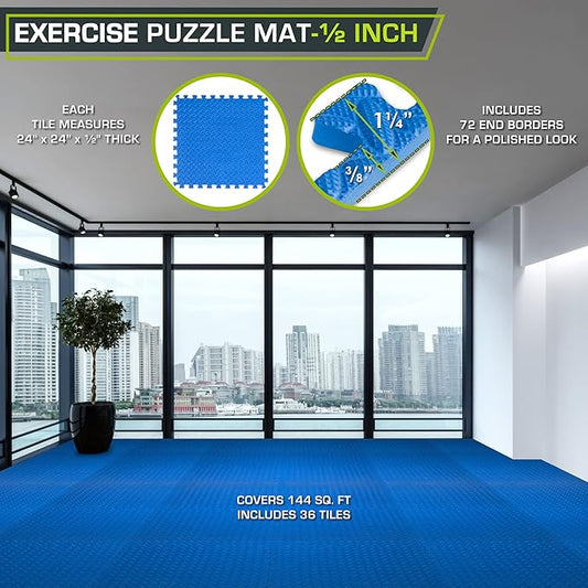 ProsourceFit Puzzle Exercise Mat ½ in, EVA Interlocking Foam Floor Tiles for Home Gym, Mat for Home Workout Equipment, Floor Padding for Kids