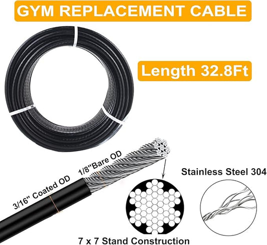 32.8Ft/98.4Ft Fitness Pulley Cable,Replacement Cable Machine Accessories for DIY Home Gym, Gym Cable Replacement,PVC Coated,Thick 3/16"(5mm)