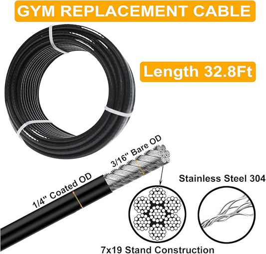 32.8Ft/98.4Ft Fitness Pulley Cable, Gym Steel Cable for DIY Home Gym, Gym Cable Replacement for Pulley Cable Machine,TPU Coated,Thick 1/4"(6mm)