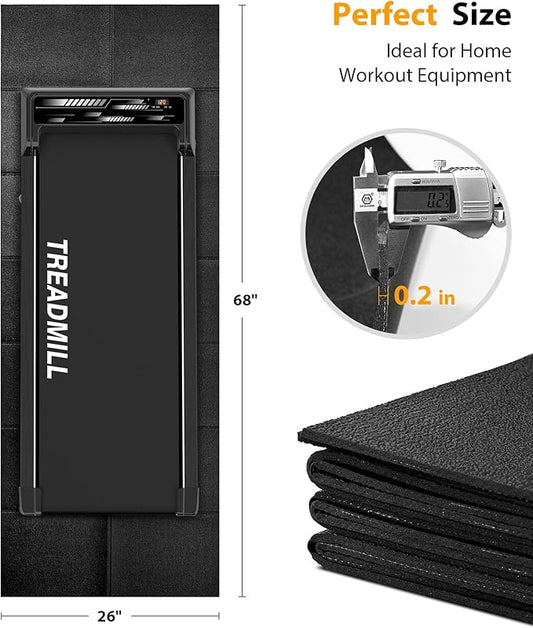 Foldable Rubber Treadmill Mat - Exercise Bike Mat with Waterproof Non-Slip Shock Absorption, Exercise Equipment Mat to Protect Floor for Home Gym Workout