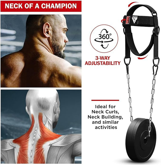 RDX Neck Harness Weight Lifting Training, Head Harness Exerciser, 4MM Padded Neck Builder, 90CM Long Adjustable Steel Chain, Gym Boxing Strength Resistance Workout, Strengthener Trainer Equipment