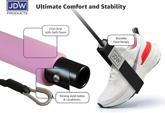 Pilates Bar Kit | 2 Standard & 2 Strong Bands for Full-Body Workout | Storage Bag Included | Fitness Equipment for Home Gym, Yoga