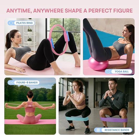 Pilates Ring Equipment Kit at Home, Resistance Bands and Exercise Ball for Women Workout Set, Pilates Rings 14 Inch Yoga Magic Circle Working Out, Pilates Equipment Essentials Kit Accessories
