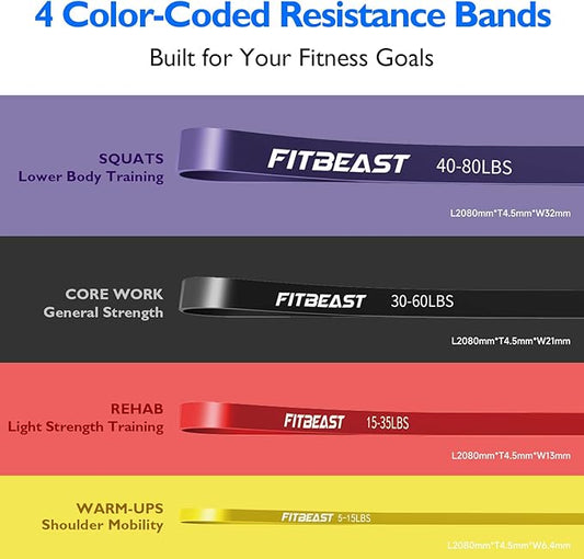 FitBeast Resistance Bands Set, 6 Different Levels, Pull Up Assist Bands for Strength Training, Crossfit, Powerlifting, Muscle Toning, Yoga, Mobility Exercises, Rehabilitation, Full-Body Workout