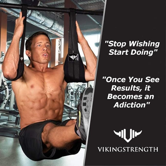 Vikingstrength AB straps - Premium Padded Home Gym Exerciser Ab Slings pair for pull up bar - Hanging Leg Raiser Fitness for six pack - Workout Equipment for Men & Women + Bonus Bag
