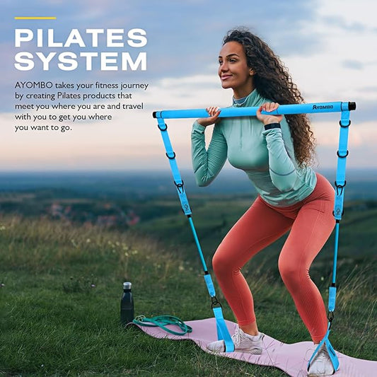 Pilates Bar Kit with Resistance Bands, Pilates Workout Equipment for Legs, Hip, Waist, Arm, Squats Exercise Equipment for Home Workouts, Adjustable 3-Section Pilates Bar Kit for Women & Men
