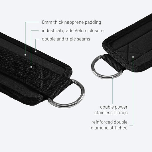 Slim Panda Ankle Strap for Cable Machine,Ankle Cuff for Kickbacks, Booty Hip Abductors,Glute Workouts, Leg Extensions, Curls for Men and Women, Adjustable with Double D-Rings