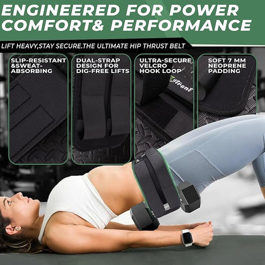 Hip-Thrust-Belt, Foldable Design, Slip-Resistant Padding, Supports 300 lbs, Ideal for Glutes Training with Dumbbells, Kettlebells & Plates, Great for Gym & Home Hip Thrust Workouts