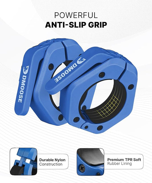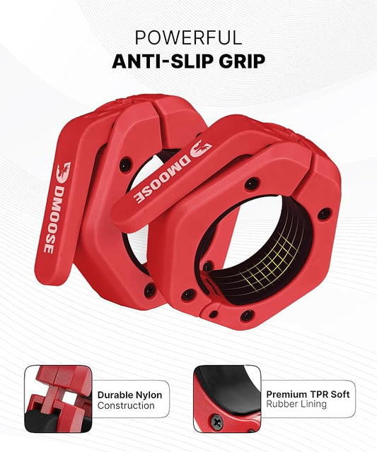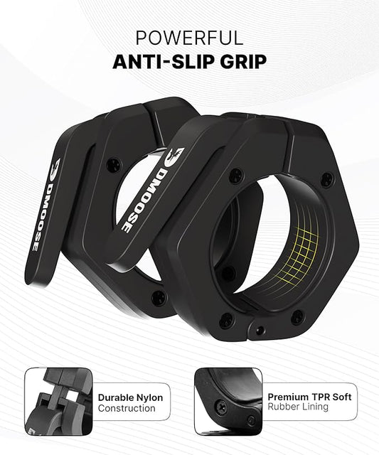DMoose Fitness Barbell Clips 2 Inch (Pair) - Quick Release Olympic Barbell Clamps & Collars with Anti Slip TRP Grip for Secure Weightlifting and Powerlifting - Weight Clips for Bars at Home or Gym
