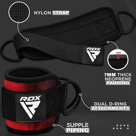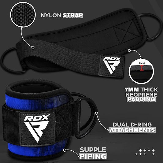 RDX Ankle Straps for Cable Machines – 7MM Neoprene Padded 10"x4" Adjustable Gym Cuffs with Dual D-Rings – Weight Attachments for Wrist Glutes Leg Kickbacks Hip Abduction Strength Workouts – Men Women