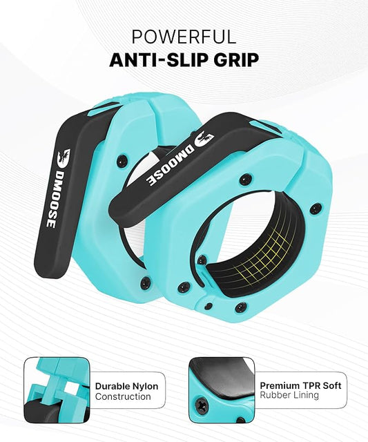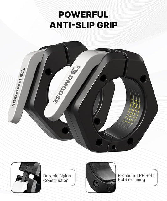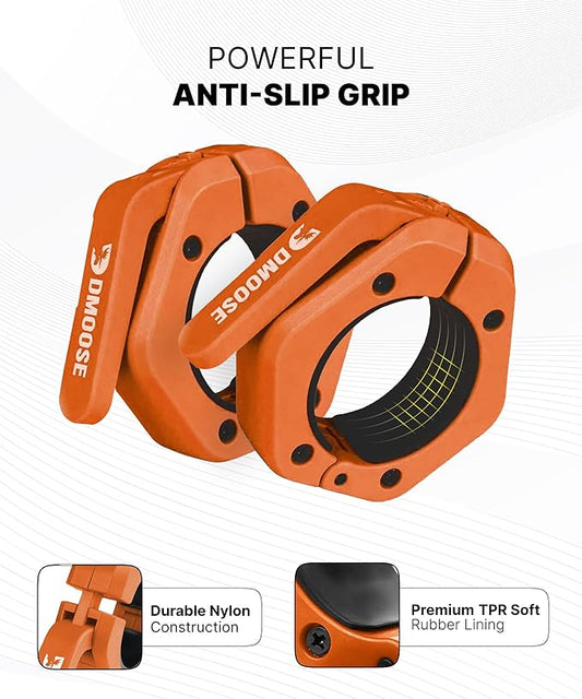 DMoose Fitness Barbell Clips 2 Inch (Pair) - Quick Release Olympic Barbell Clamps & Collars with Anti Slip TRP Grip for Secure Weightlifting and Powerlifting - Weight Clips for Bars at Home or Gym