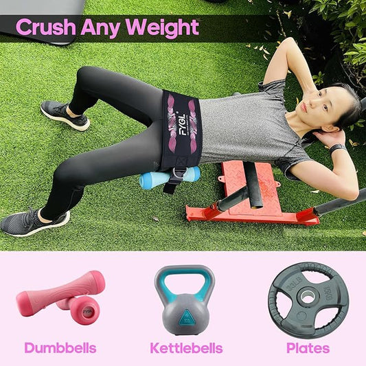 Heavy Duty Hip Thrust Belt with Comfortable Non-Slip Padding for Hip Protection – Effective Glute Builder & Booty Belt for Dumbbells, Kettlebells, Plates – Suited for Home, Gym, On-the-Go Workouts